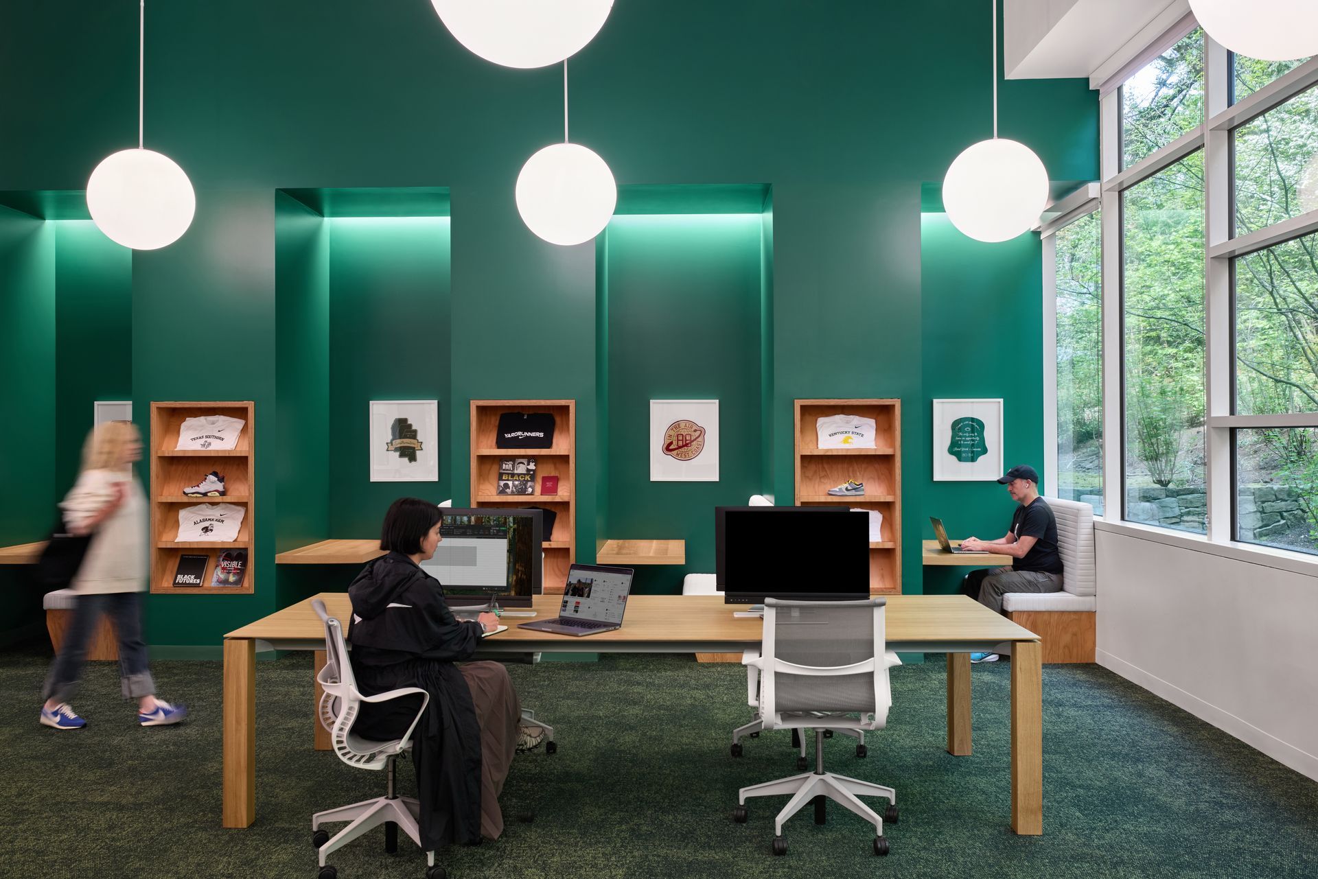 - Use brand, finishes, accessories, millwork, and/or plants to curate an inviting atmosphere that feels different from the open workspace.