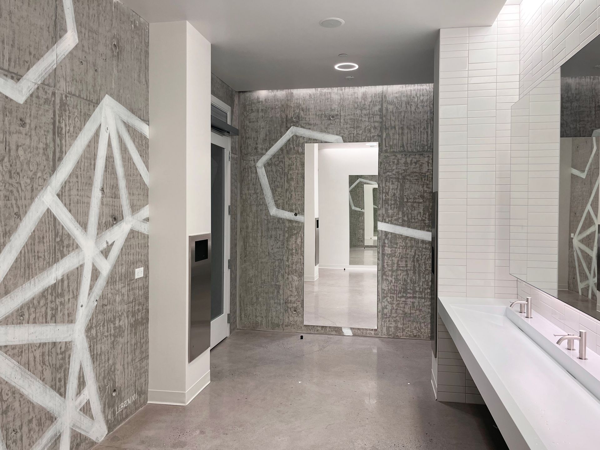 Brand opportunities in restrooms are limited. Embed storytelling with color and material selections, and with custom tile configurations when budget permits.